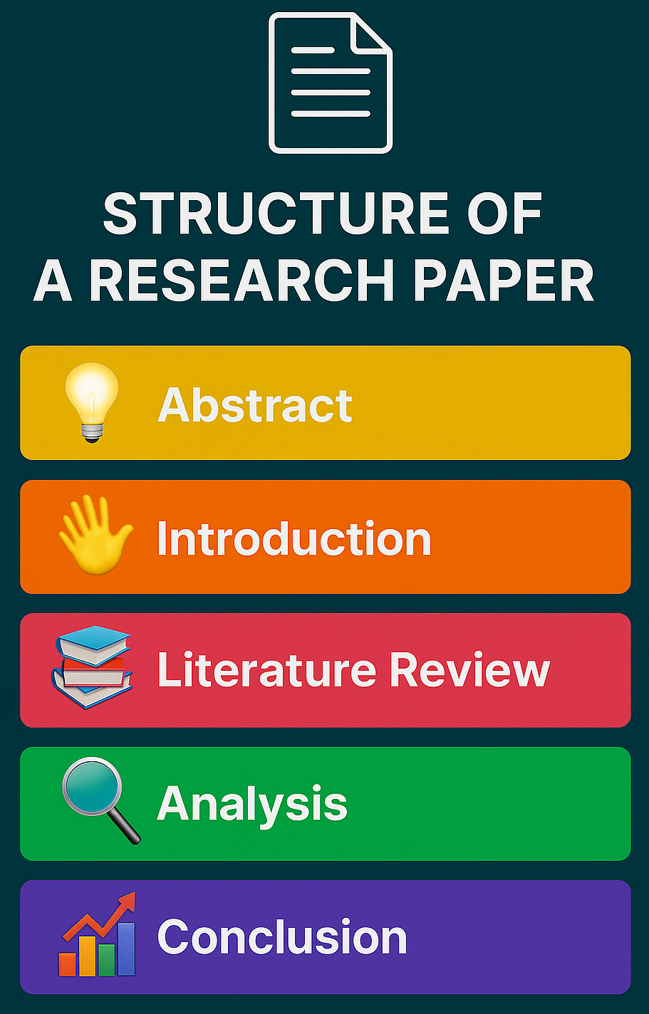 - Structure of a research paper (Abstract, Introduction, Literature Review, Analysis, Conclusion)