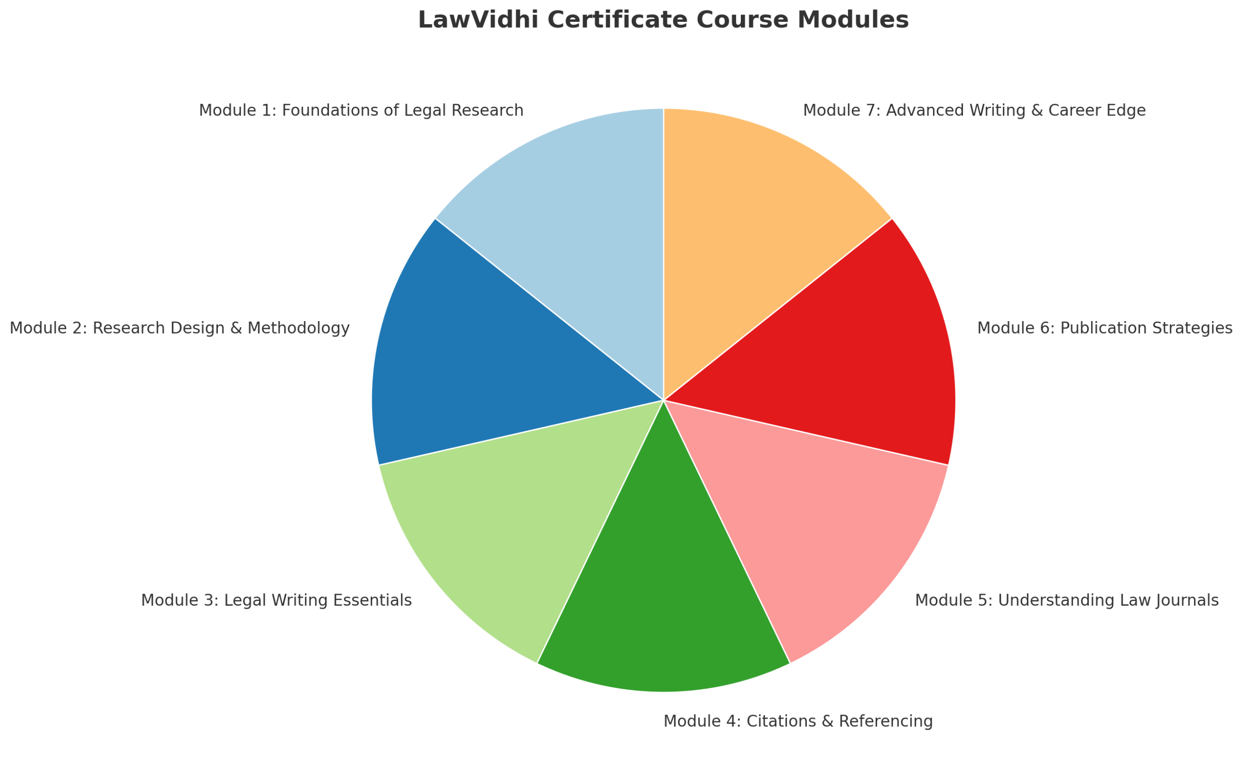 Upon successful completion, participants will receive a LawVidhi Certificate in Legal Research Paper Writing & Scholarly Publications, enhancing their academic and professional credentials.